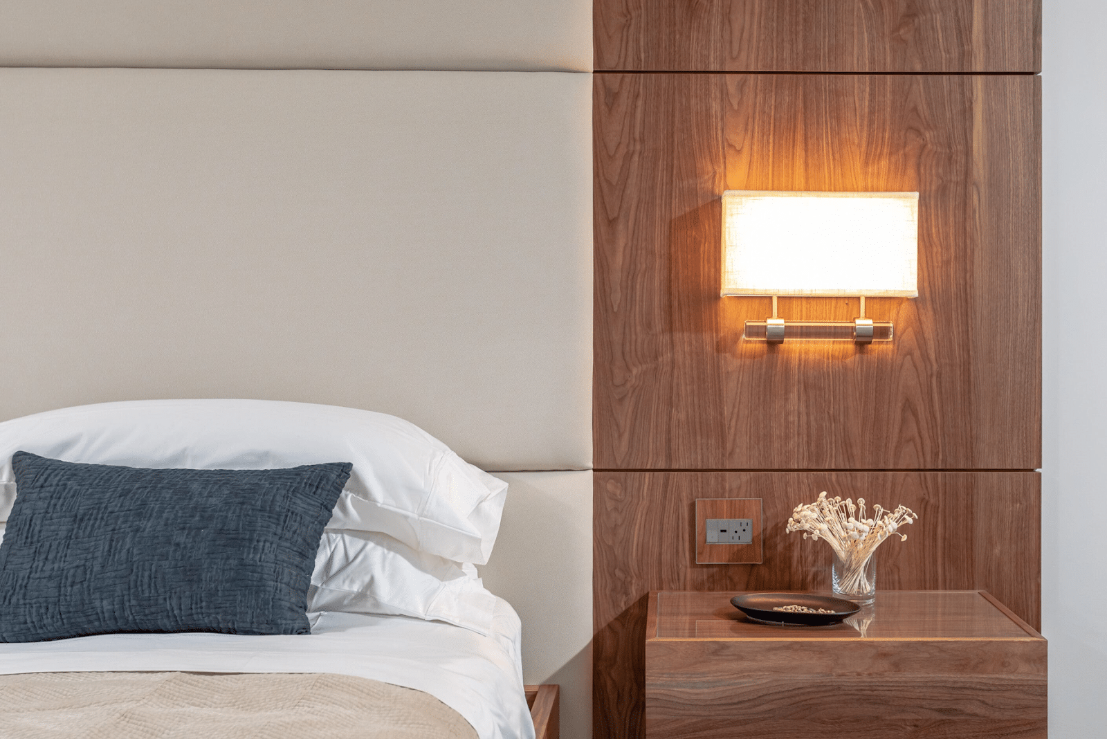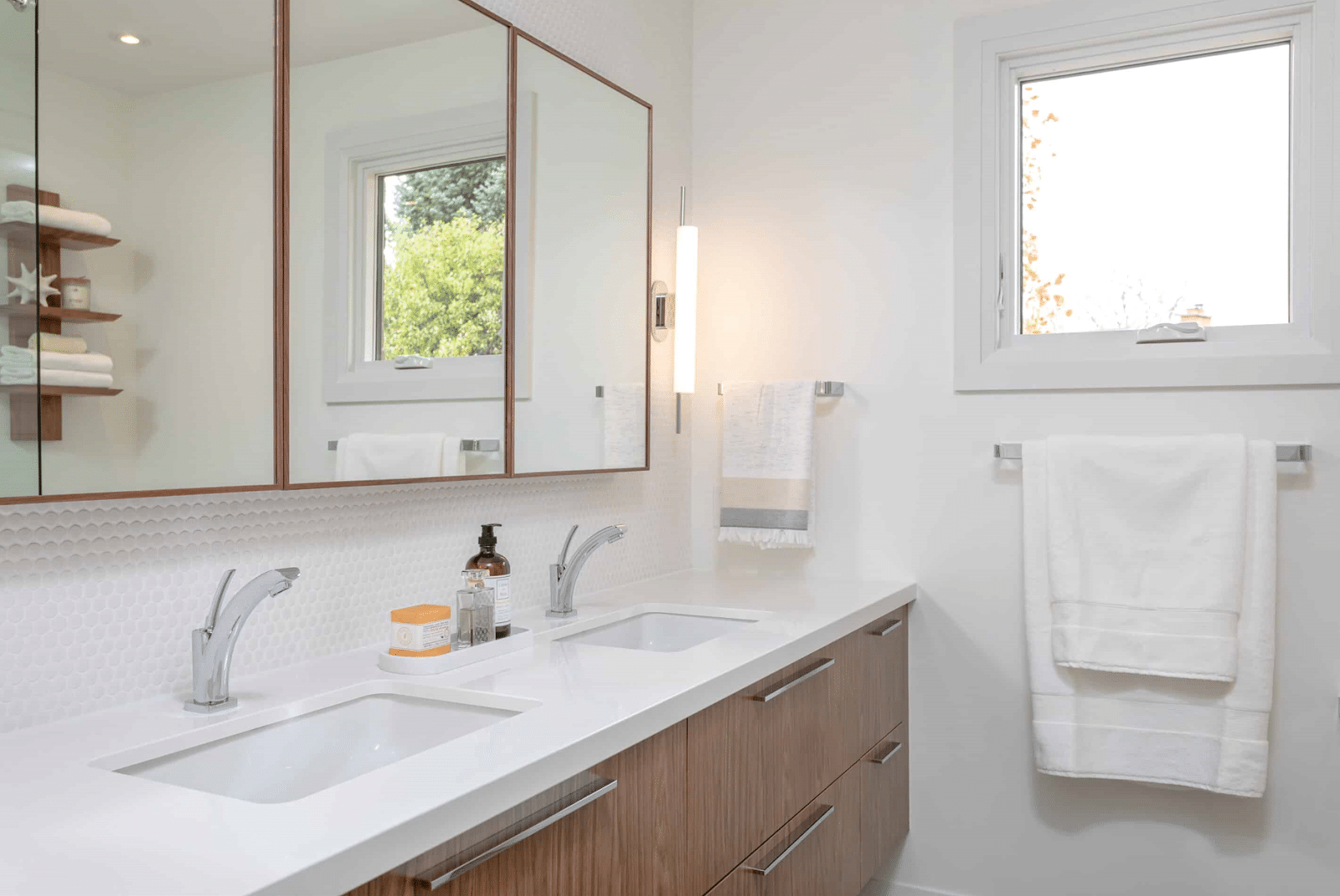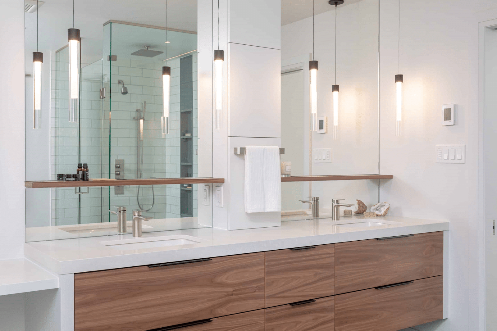 Project Old Post is a full interior gut renovation and exterior transformation, designed in collaboration with Lisa Frahm. This home blends luxurious modern design with warm, tailored details and a meticulous attention to craftsmanship. The reimagined layout is anchored by a dramatic dual-height foyer featuring a sculptural glass staircase that sets the tone for the rest of the home. At its heart is a contemporary custom kitchen, paired with a striking slate fireplace framed by custom walnut built-ins. Rich materials and layered textures—including wallpaper accents and walnut millwork—bring depth and warmth to each space. Upstairs, all bathrooms showcase high-end finishes and custom walnut vanities. Within the primary suite, a bespoke headboard wall integrates bedside tables, lighting, and even custom walnut power outlets, merging form and function with elegance. The transformation continues outdoors with comprehensive hardscaping and softscaping, including an elevated new driveway that enhances the home’s curb appeal and completes this thoughtfully executed renovation.