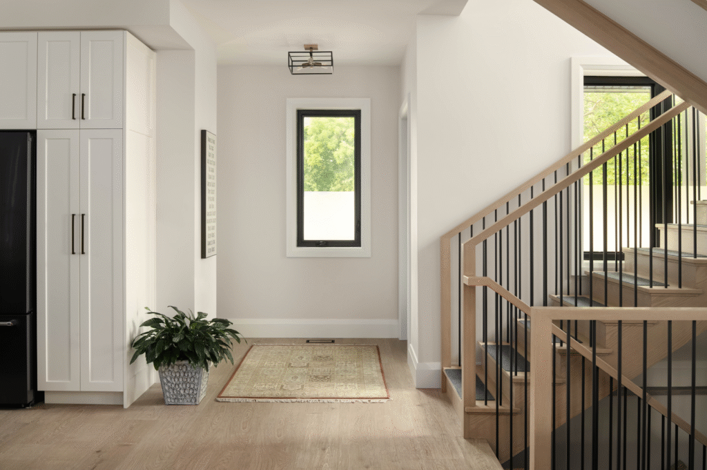 Inside, the layout was completely rethought to support busy family life. A custom kitchen and laundry room, all-new stairs, upgraded wiring and HVAC, and carefully selected flooring, finishes, and fixtures come together to create a home that’s both beautiful and built to last.
